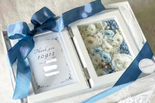 ブルーのプリザーブドフラワーフォトフレームいろいろ